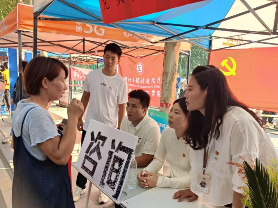 迎新期间,党员先锋岗成员统一佩戴党员徽章,在学院报到点设立专属服务台。通过“主动询问需求、全程引导办理、即时解决问题”的三步工作法,为新生及家长提供行李搬运、路线指引、报到流程讲解、校园生活咨询等“一站式”服务。针对部分新生对专业方向的困惑,教师党员还现场开展学业规划指导,帮助新生快速适应大学生活。