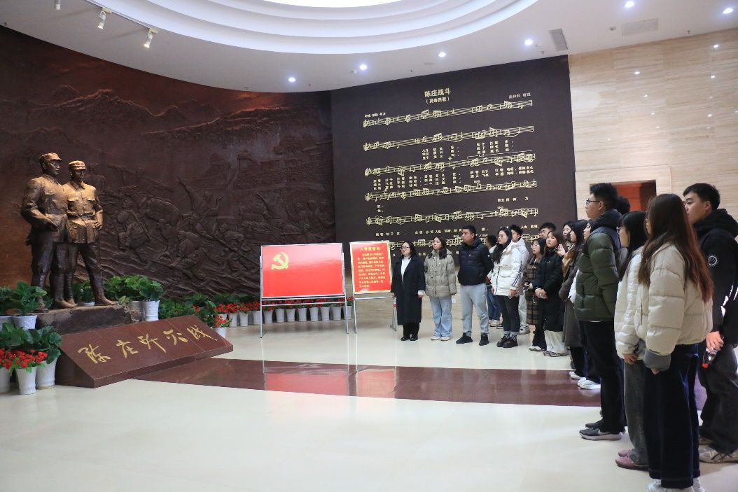 在陈庄歼灭战纪念碑前,学生党支部书记刘腾以“从红色基因中汲取奋进力量”为题开展现场教学,结合陈列馆展陈内容,深入解读“人民战争”的伟大智慧:“陈庄战役的胜利,是军民同心、因地制宜的典范。今天的土木人同样需要这种‘逢山开路、遇水架桥’的攻坚精神,将专业所长转化为服务国家战略的实际行动。”
