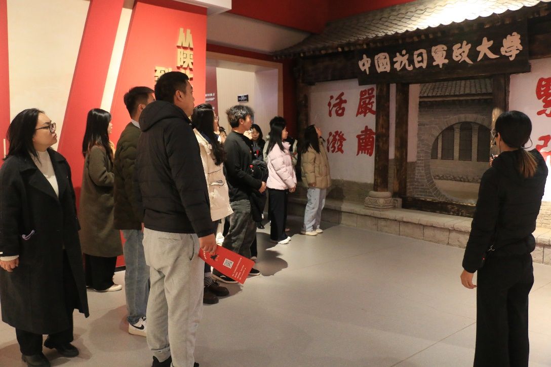 在陈列馆讲解员的引导下,师生党员依次参观了陈庄歼灭战主题展厅、抗大二分校纪念馆及灵寿革命史展厅。展馆内,斑驳的九二式重机枪、贺龙元帅亲笔签发的作战命令、村民自卫队使用的大砍刀等36件珍贵文物,配合动态投影与场景复原,将1939年秋那场“以弱胜强、以智破敌”的经典战役徐徐展开。当看到展板上“歼敌1380余人,击毙日军水源旅团长”的战果时,师生党员无不震撼于八路军120师与晋察冀军区部队“小米加步枪”
